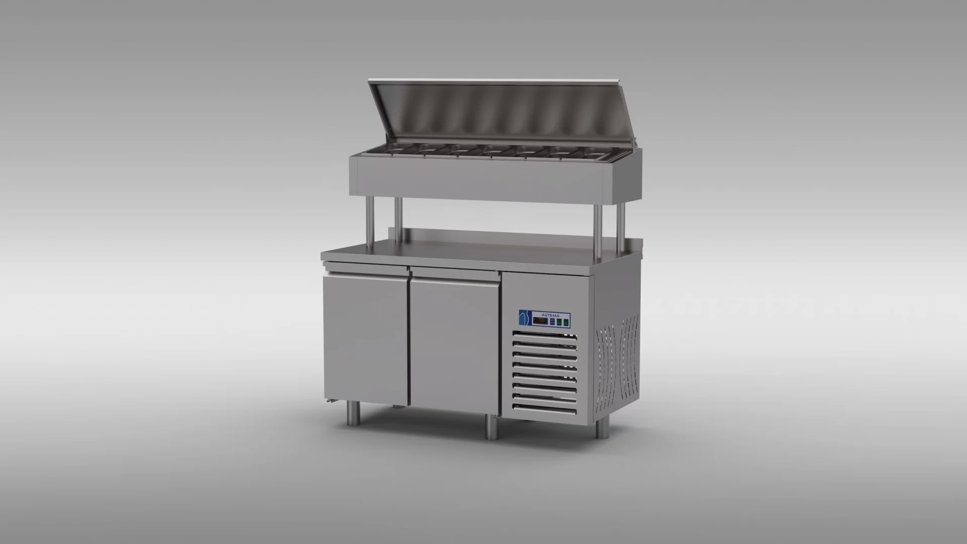 Geniş hacimli iç dizayn, çok çeşitli ürünleri saklamanızı sağlar. İç genişlik GN 2/1 küvete uygun olarak tasarlanmıştır. Özel kapı menteşe sistemi ve 90° sabit durma ve kendi kendine kapanabilen kapı özellikleri ile buzdolabı, kullanım kolaylığı ve verimliliği bir arada sunar.