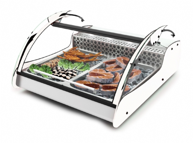 – Gıda alanında serinliği sağlamak ve ürünü kurutmadan sergilemek için soğuk bir tepsi ve statik bir buharlaştırıcı ile donatılmıştır.