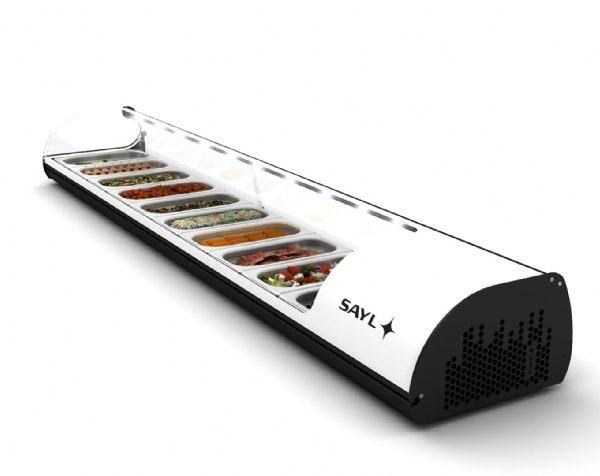 – Gıda alanında serinliği sağlamak ve ürünü kurutmadan sergilemek için soğuk bir tepsi ve statik bir buharlaştırıcı ile donatılmıştır.